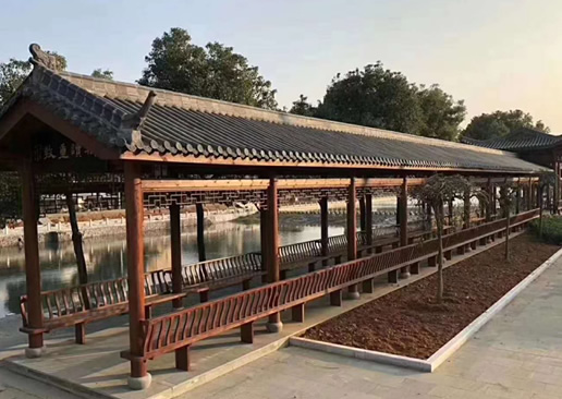 湖北黃岡小青瓦防腐木古建長(zhǎng)廊